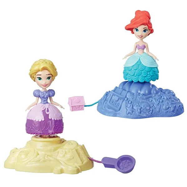 Active des moments passionnants en faisant tournoyer tes mini-poupées Ariel et Raiponce ! 2 mini-poupées : Ariel ou Raiponce – Placer la poupée sur son socle et tirer la ficelle pour la charger en énergie et regarde-la tournoyer sur elle-même !