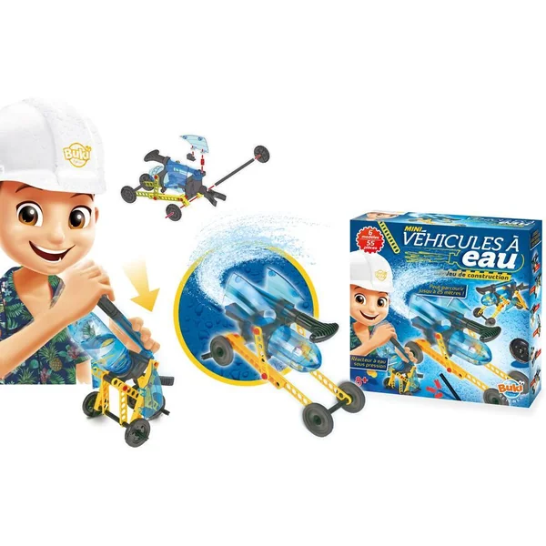 Construis 6 modèles qui fonctionneront grâce à l’énergie hydropneumatique ! Les véhicules peuvent parcourir plus de 25 mètres ! 6 modèles différents: pistolet à eau, voiture de course, segway… Notice illustrée en couleurs