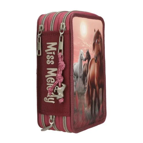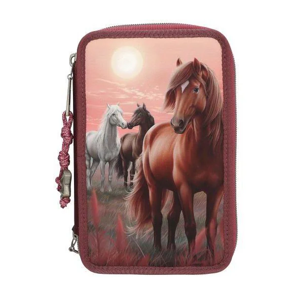 Trousse à trois plis rouge avec motif de cheval et pendentif