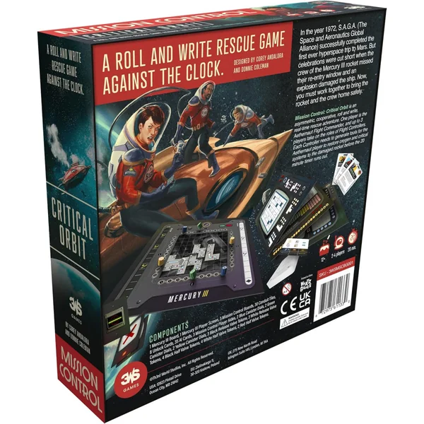 Mission Control: Critical Orbit est un jeu asymétrique et coopératif de roll and write en temps réel. Un joueur incarne le Commandant de vol Aethernaute, tandis que jusqu’à trois autres joueurs endossent le rôle de Contrôleurs de vol. Chacun de ces contrôleurs effectue des tâches spécifiques pour obtenir les outils nécessaires au Commandant afin de restaurer l’oxygène et les systèmes critiques du vaisseau.