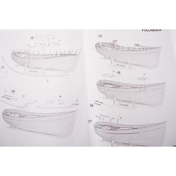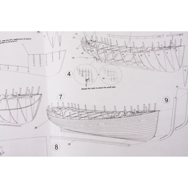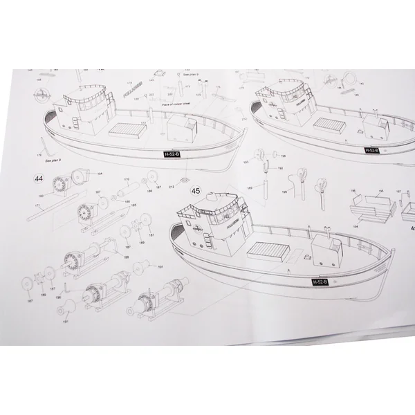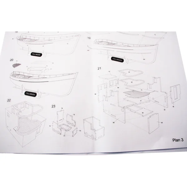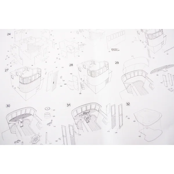 Le set contient un ensemble complet de documentation de dessin du modèle à l’échelle 1:1 avec le processus de construction, les pièces sont soigneusement marquées sur le dessin et il y a aussi une liste des différentes pièces du modèle.