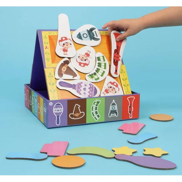Des lutins malicieux ont renversé ton coffre : quel bazar ! Retrouve tes jouets préférés et place les dans le coffre en équilibre. Mais attention à ne pas tout faire tomber !