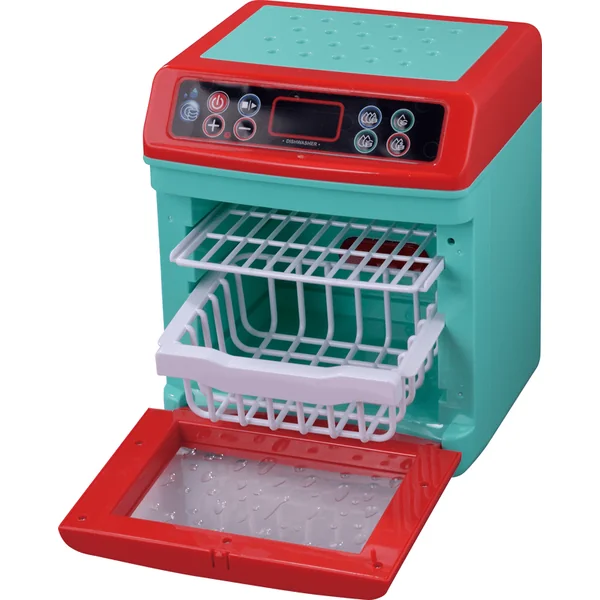 Lave-vaisselle avec régulation du temps de lavage, 4 modes de lavage et vaisselle. Après avoir placé la vaisselle dans le lave-vaisselle et fermé la porte, vous le démarrez en appuyant sur le bouton.
