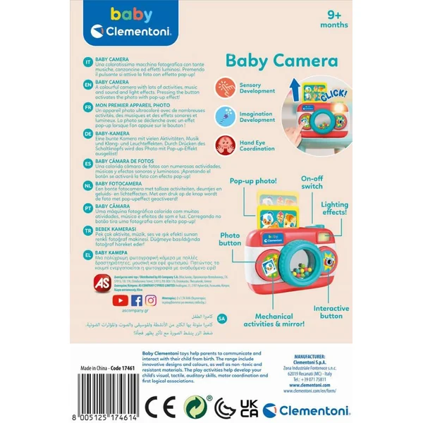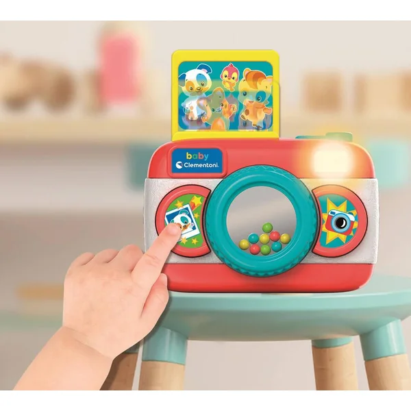 Un appareil photo aux couleurs vives et au design travaillé dans les moindres détails qui joue de jolies mélodies et apprend les cris d’animaux à chaque déclenchement de l’obturateur. Avec des boutons colorés qui activent des sons et mélodies, guidant ainsi Bébé à travers des expériences de jeu interactives et stimulantes. Avec des effets sonores, un effet lumineux du flash, mais aussi des activités mécaniques pour développer les capacités cognitives et la motricité fine. Chaque bouton, chaque activité et chacun des matériaux a été soigneusement conçu pour rendre le jouet facile à utiliser et attrayant. Lorsque le déclencheur est enfoncé, il active des effets sonores et une photo avec des images d’animaux. L’objectif de l’appareil photo contient une petite vitre avec des billes aux couleurs vives pour capter l’attention de Bébé et l’initier au concept de la perspective et de la profondeur. Un jouet de qualité supérieure et totalement sûr, avec des détails et couleurs soigneusement choisis.