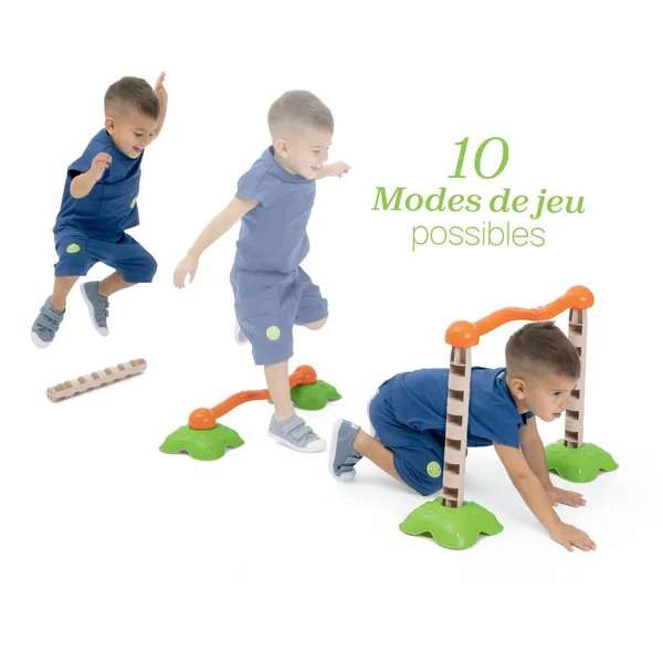 Un kit complet de mouvement pour le développement des capacités motrices de bébé. Il comprend 22 pièces (balles, barres, anneaux…) pour une dizaine d’activités différentes.