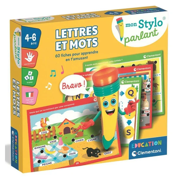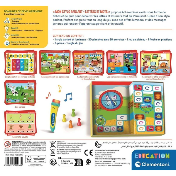 • Le stylo parlant s’illumine et s’adresse à l’enfant pour l’encourager tout au long de l’activité ! Grâce à ses effets lumineux et son interaction vocale, il rend l’apprentissage plus ludique et motivant.