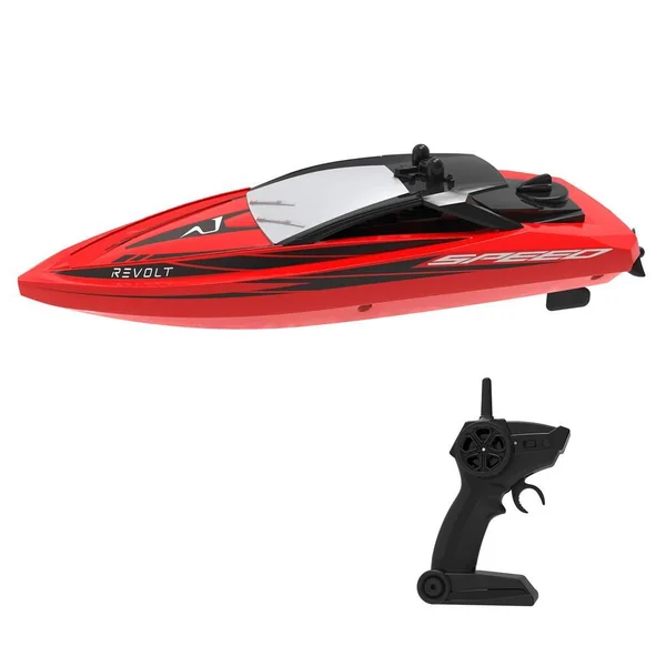 Fais des vagues avec le bateau radiocommandé Galaxy. 2.4 GHz. Toutes fonctions : marche avant, arrière, tourne à gauche et à droite. Propulsion à double moteurs (2 hélices). Télécommande de type pistolet avec avertissement de batterie faible. Portée maximale de 50 mètres. Vitesse maximale : 8 km/h. Temps de jeu (d’autonomie) : 20 minutes. Mise sous tension automatique dans l’eau. Ne pas utiliser en eau salée. 1 batterie rechargeable 3.7V LiPo 650 mAh et un câble USB pour charger inclus. 2 piles LR6 non fournies pour la radiocommande. Notice incluse.