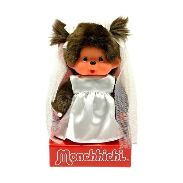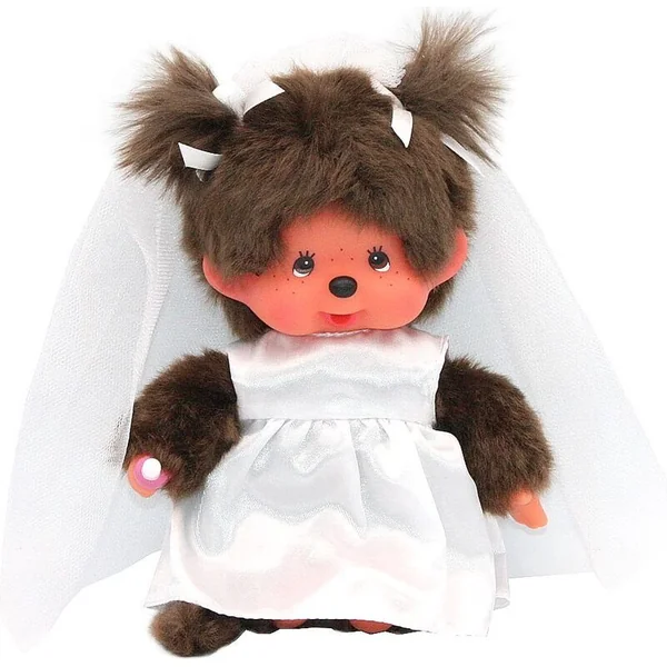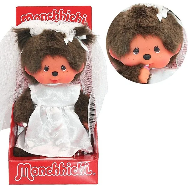 Monchhichi mariée est un adorable jouet en peluche représentant une mariée. Ce personnage iconique, connu pour son apparence ressemblant à un singe, a un visage, des bras et des jambes en plastique de qualité, tandis que son pelage brun est en peluche extrêmement douce qui incite à câliner et à jouer.