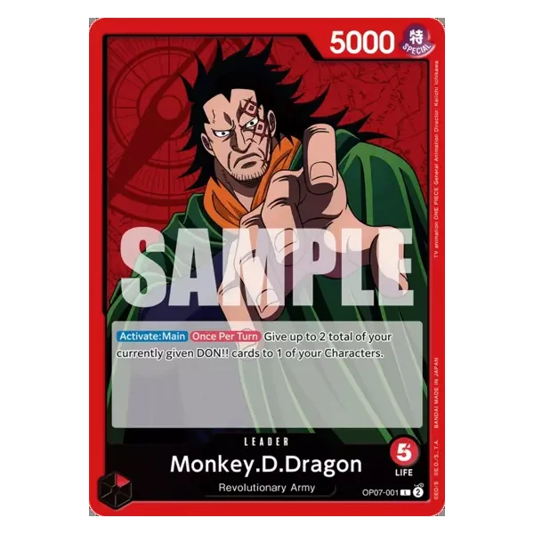 Découvrez Monkey D. Dragon (op07001), une carte Leader de l’extension 500 Years into the Future. Idéale pour compléter votre collection, cette carte Leader plaira autant aux collectionneurs qu’aux joueurs.