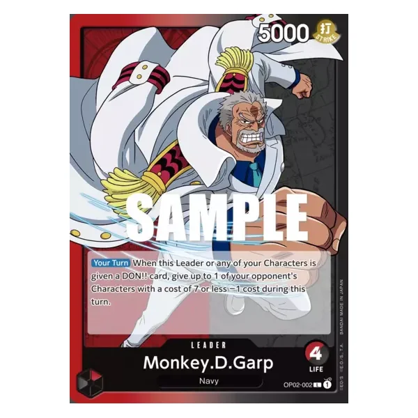 Découvrez Monkey D. Garp (op02002), une carte Leader de l’extension Paramount War. Idéale pour compléter votre collection, cette carte Leader plaira autant aux collectionneurs qu’aux joueurs.
