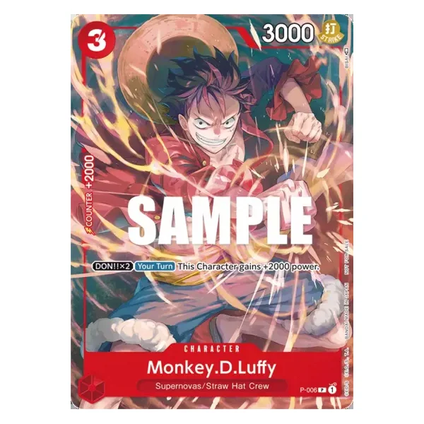 Découvrez Monkey D. Luffy (p006), une carte Promo de l’extension Promos. Idéale pour compléter votre collection, cette carte Promo plaira autant aux collectionneurs qu’aux joueurs.