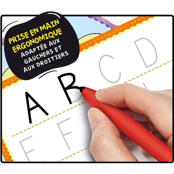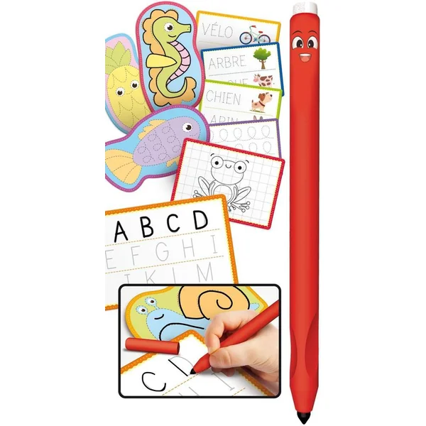 Un jeu concu pour apprendre les premiers mots avec l’aide du stylo spécial Montessori. Le stylo ergonomique favorise une prise en main et une écriture correctes.