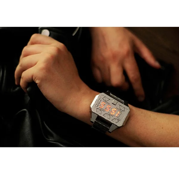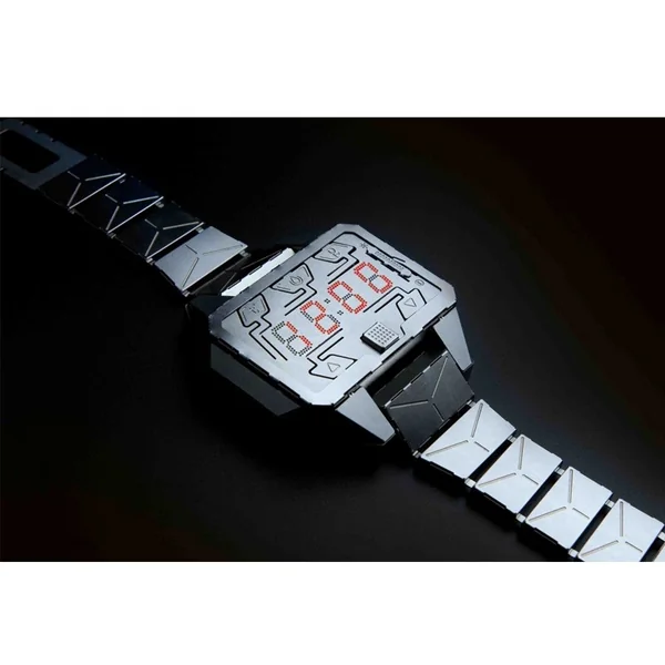 Êtes-vous confus? Restez avec nous et rencontrez notre Time Creator venu d’un temps légendaire ! Ce modèle a un corps massif, un large bracelet avec des liens carrés, un écran lumineux et des boutons, stylisé sous le circuit imprimé. Chaque détail nous immerge dans l’atmosphère des choses réelles.