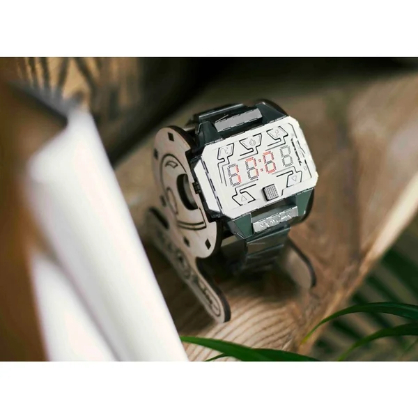 Cette version de l’horloge est très pratique à porter sur votre poignet. En outre, elle est très agréable au toucher. Le boîtier du modèle est facile à assembler. La carte avec lumière, la prise de charge USB et tous les boutons sont fournis comme pièces prêtes à l’emploi.