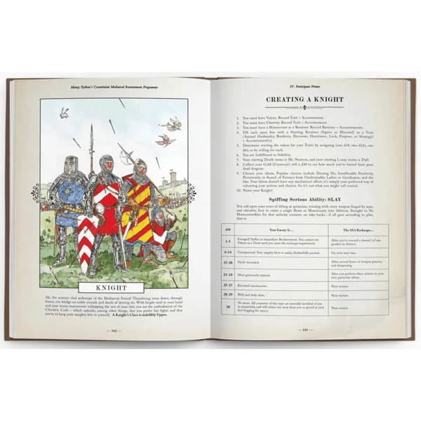 Nul besoin d’être familier avec l’œuvre des Monty Python, ni d’avoir une quelconque expérience des « jeux de rôle ». Si toutefois vous avez de l’expérience dans ce domaine, vous êtes probablement une personne bien trop loufoque pour participer et devriez arrêter votre lecture immédiatement.