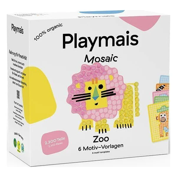 Comprend approximativement 2 300 PlayMais® MOSAIC, 6 planches à coller imprimées, des directives et divers accessoires.