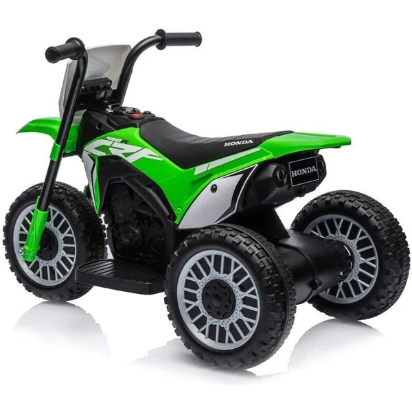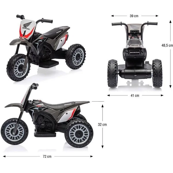 Lorsque vous l’allumez, le son du moteur se fait entendre et en appuyant sur la pédale d’accélérateur, la moto démarre. Les grandes roues avec un motif tout-terrain assurent la stabilité lors de la conduite à l’extérieur et le siège moulé garantit confort et sécurité pour les plus jeunes utilisateurs. Les essieux en acier des roues garantissent la stabilité et la durabilité du véhicule. Un klaxon est également inclus, ce qui rend le jeu encore plus amusant.