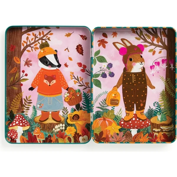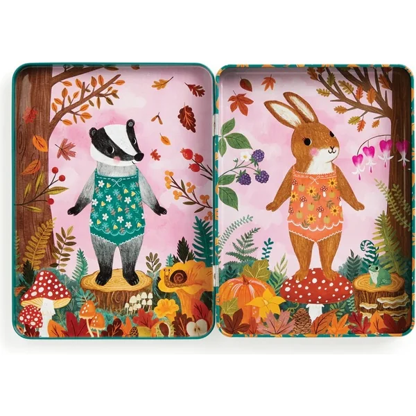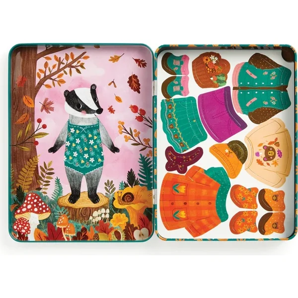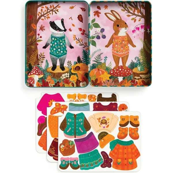 Le jeu comprend 2 scènes illustrées en arrière-plan, l’une avec un lapin, l’autre avec un blaireau, et tous deux attendent leurs vêtements folkloriques.