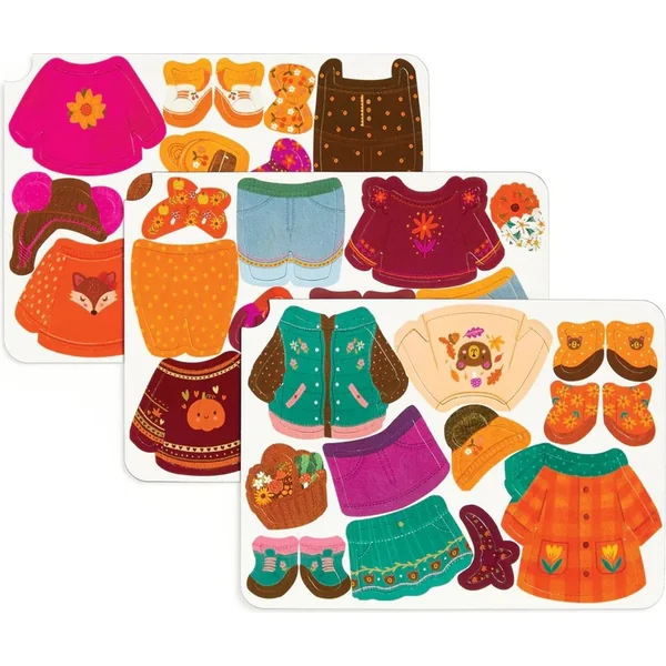 Il y a 40 aimants de vêtements et d’accessoires thématiques sur 3 cartes. Combinez tout selon vos propres idées. Convient pour la maison et en voyage.