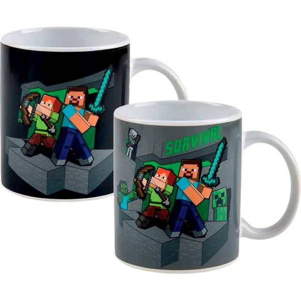 Un mug en céramique du célèbre jeu Minecraft. Thermo réactif : il change de couleur au contact de la chaleur. Contenance : 32 cl ou 320 ml. Le mug peut contenir des boissons chaudes et froides. Consignes de lavage : ne pas passer le mug au lave-vaisselle. Le mug ne doit pas être mis au four micro-ondes. Instructions imprimées sur la boîte. Ce produit n’est pas un jouet. Licence : Minecraft.