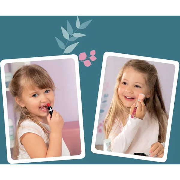 Set beauté composé d’une trousse à maquillage, avec 6 accessoires factices dont un mascara, d’un pinceau, d’une lime à ongles, d’un rouge à lèvres, d’une ombre à paupières et d’une crème pour les mains.