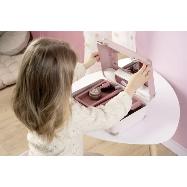 Grâce à la possibilité de verrouillage, rien ne se perd dans la trousse pendant le transport. De plus, elle dispose d’un miroir et d’un compartiment secret. Les étagères à l’intérieur peuvent être repliées pour créer de l’espace pour d’autres cosmétiques.
