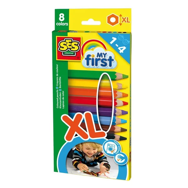 8 petits crayons de couleurs de gros diamètre, de couleurs vives. Pour dessiner et colorier facilement. Les crayons conviennent aux enfants de plus de 12 mois, de par leur forme ergonomique.