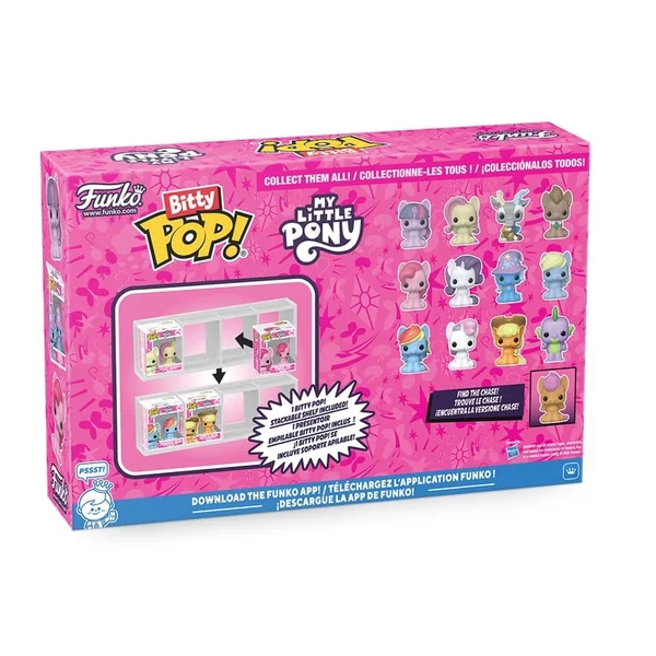 Le monde de POP! s’agrandit et se rétrécit avec les objets à collectionner Bitty POP! ! Enrichissez votre collection My Little Pony avec ce pack de 4 figurines comprenant Bitty POP! Pinkie Pie, Bitty POP! Rarity, Bitty POP! Trixie et Bitty POP! Derpy. Vous avez 1 chance sur 6 de trouver la chase de Bitty POP! Scootaloo.
