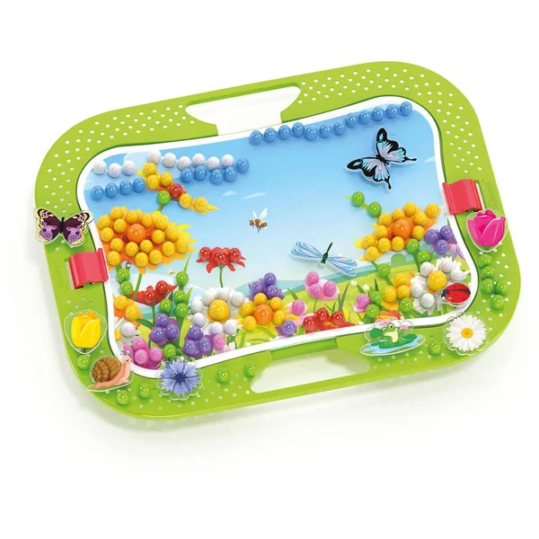 Créez votre jardin fleuri avec les clous colorés. Les enfants développent ainsi leur motricité fine.