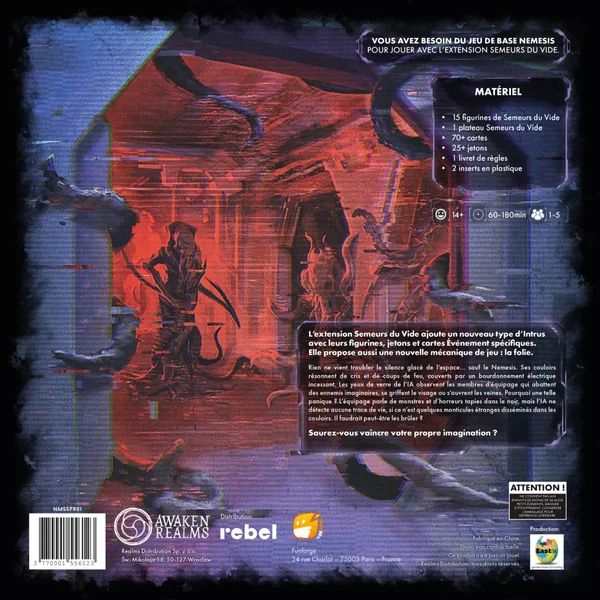 Nemesis : Semeurs du vide est une extension accessible dès l’âge de 12 ans pour des parties de 90 minutes environ avec de 1 à 5 joueurs. Il est édité par Funforge.