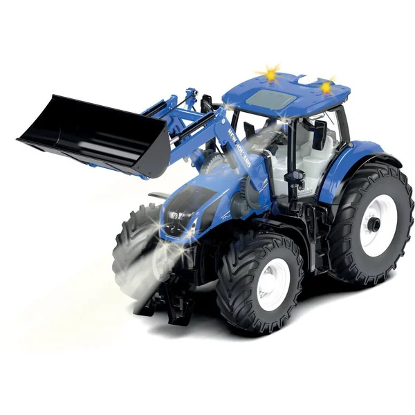 A la fois puissant et econome, le New Holland T7.315 est un modèle polyvalent, il est aussi à l’aise dans les champs que sur la route. Il fait partie de la gamme des tracteurs ultra-resistants. Grâce à son chargeur frontal, le New Holland T7.315 peut realiser des travaux de manutention à la ferme. Via l’application SIKUCONTROL, vous pouvez enclencher les 5 vitesses, allumer les phares, commander l’attelage arrière … Le bras de chargement du chargeur frontal et le chargeur peuvent être actives comme dans la realite. Une fourche à palette est egalement incluse avec ce tracteur, le chargeur frontal devient alors un chariot elevateur / ce qui est super pratique.