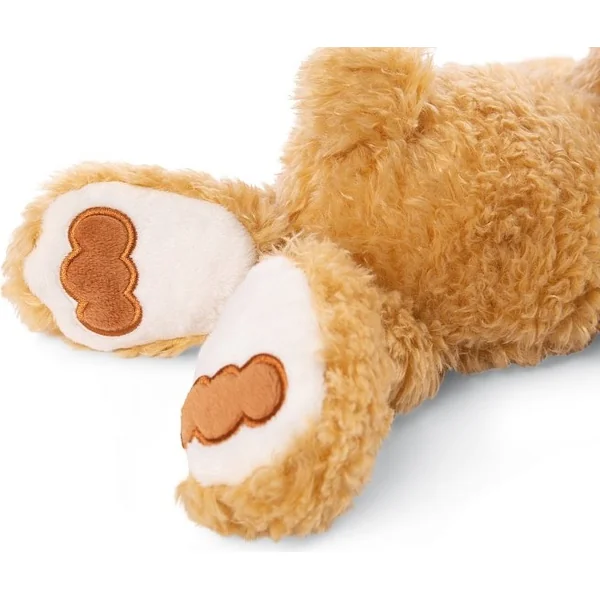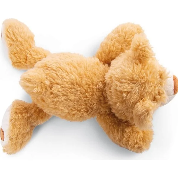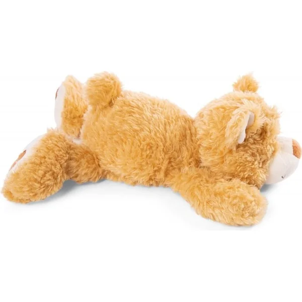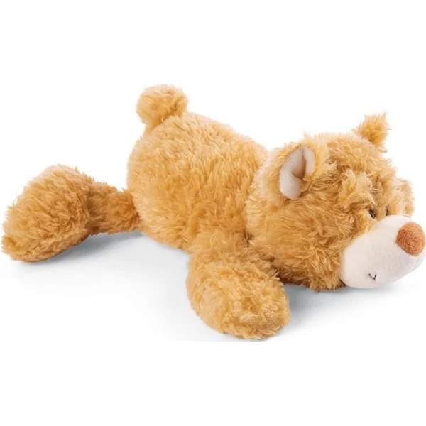 Ce super doudou en peluche est confortablement allongé sur le ventre et a un long poil extra moelleux fabriqué en peluche de haute qualité NICI. L’ours amical a de jolis yeux en bouton, un grand nez drôle et des pattes brodées.