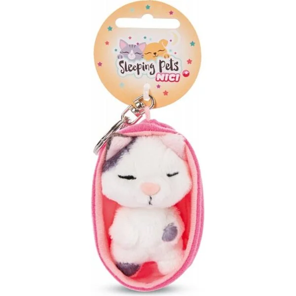 NICI porte-clés Chat endormi 8cm tacheté, panier rose