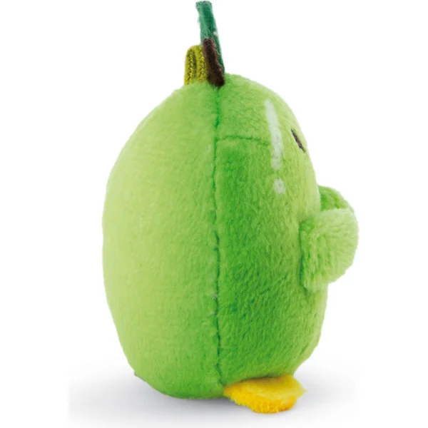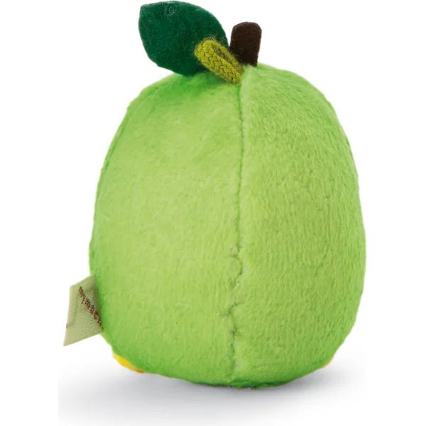 Tschieps petit poussin Mymochi Minis déguisé en pomme avec une petite feuille sur la tête. C’est drôle ! Le Tschieps moelleux de 5 cm de haut est fabriqué en peluche douce NICI.