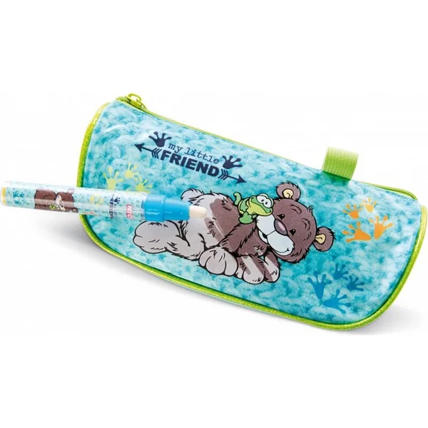 Une trousse réussie avec un motif attrayant d’un ours avec une grenouille sur l’épaule de la collection NICI dans une belle combinaison de couleurs est conçue pour contenir les fournitures scolaires de base.