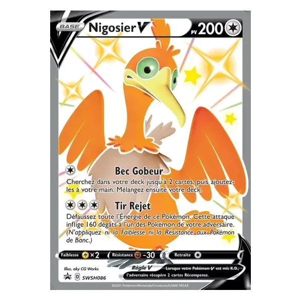 Découvrez Nigosier (swsh086), une carte Pokémon de l’extension Promos Épée & Bouclier, provenant du bloc Épée & Bouclier. Idéale pour compléter votre collection, cette carte Promo plaira autant aux collectionneurs qu’aux joueurs.