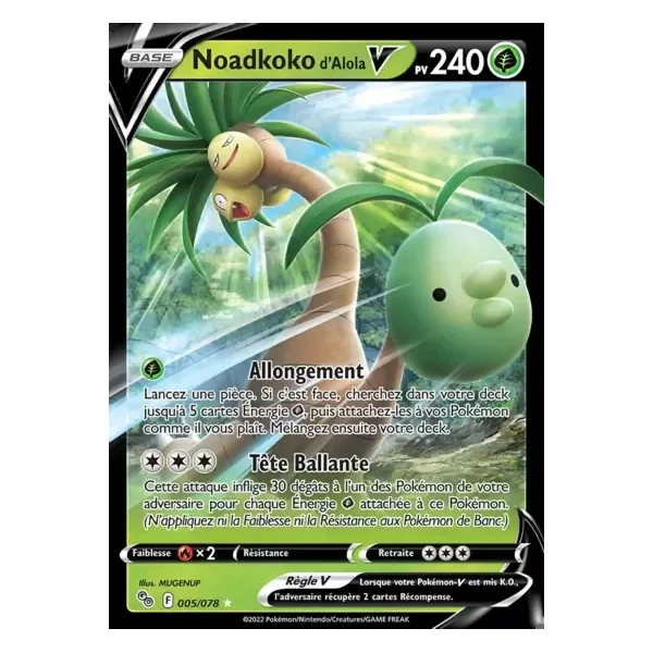 Découvrez Noadkoko de Alola (pgo005), une carte Pokémon de l’extension Pokémon GO, provenant du bloc Sword & Shield Era. Idéale pour compléter votre collection, cette carte Ultra Rare plaira autant aux collectionneurs qu’aux joueurs.