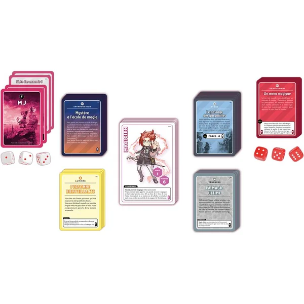 Lancez les dés, jouez vos cartes, et créez votre histoire entre amis. Hormis votre imagination, tout ce dont vous avez besoin tient dans cette boîte !