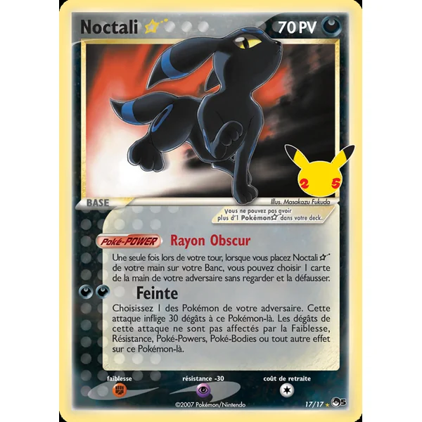 Découvrez Noctali Star (celPOP5 17), une carte Pokémon de l’extension Célébrations, provenant du bloc Épée & Bouclier. Idéale pour compléter votre collection, cette carte Ultra Rare plaira autant aux collectionneurs qu’aux joueurs.