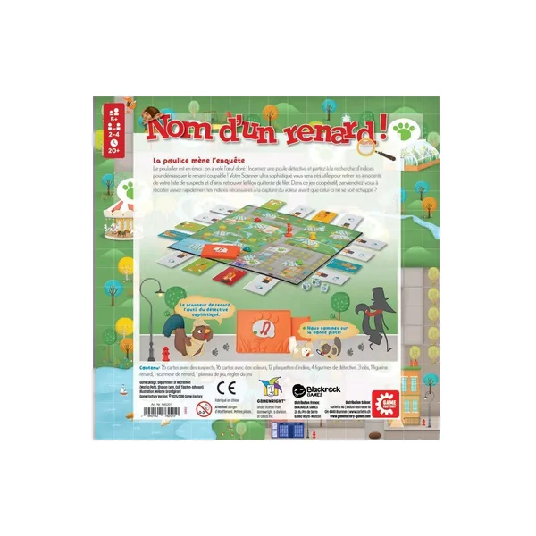 Nom d’un Renard ! est un jeu de société enfant et famille qui transforme une simple partie en vraie petite enquête coopérative. Dans cette aventure pleine de malice, les joueurs unissent leurs forces pour retrouver le coupable du vol de l’œuf d’or. L’univers est tout de suite accrocheur, avec son ambiance de poulailler en alerte, ses personnages attachants et cette sensation très agréable de progresser ensemble vers la solution.