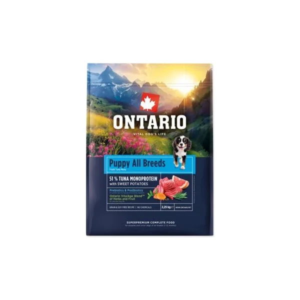 Nourriture Ontario Puppy All Breeds Monoprotein Thon & Patates Douces 2,25kg