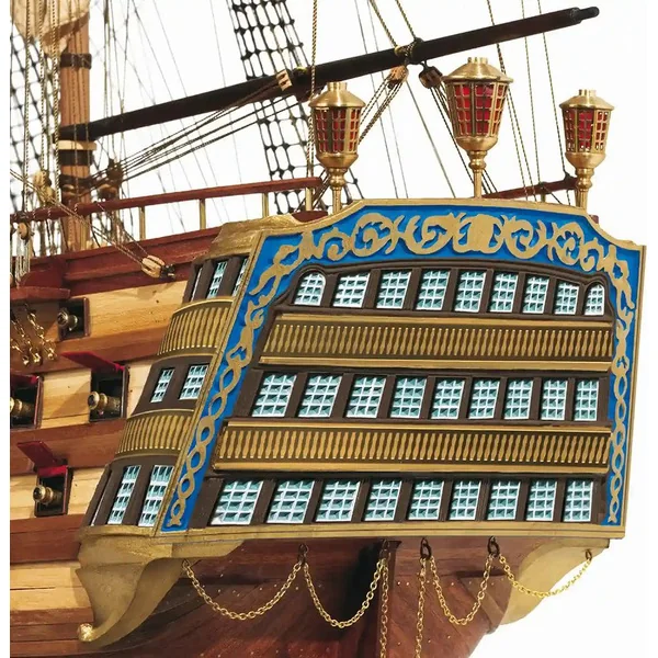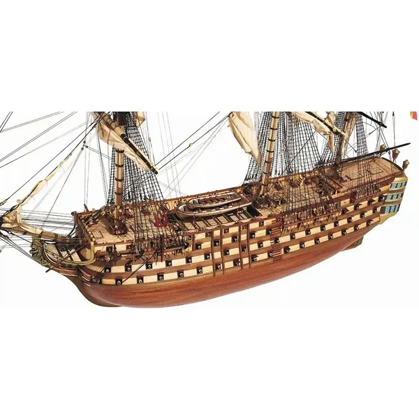 Kit de construction du modèle de bateau non flottant OCCRE Santísima Trinidad, à l’échelle 1:90. L’emballage contient des pièces pour la construction + voiles – pièces découpées au laser, baguettes, photodécoupes en laiton, cordages et autres. Plans de construction et instructions.