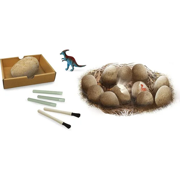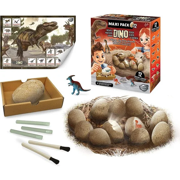L’emballage contient 12 œufs de dinosaures préhistoriques, chacun renfermant l’une des espèces de dinosaures les plus connues. Il est nécessaire d’utiliser les outils fournis pour les aider à voir le jour. Après l' »éclosion », vous créerez une collection de dinosaures et, avec l’affiche incluse, vous obtiendrez une superbe décoration pour votre chambre. Convient comme cadeau pour un individu (ensemble complet) et, une fois divisé, il est également possible d’offrir des œufs individuels. L’ensemble comprend 3 burins et 2 pinceaux.