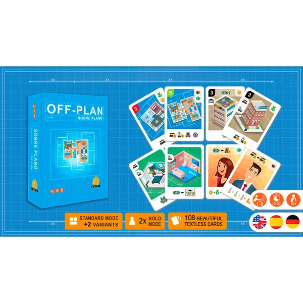 Off-Plan est un jeu très complet, avec une grande rejouabilité. Il comprend 12 personnages asymétriques, 2 variantes du jeu de base, 2 modes solo et une mini extension « l’oulet »