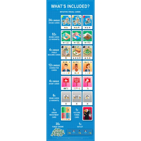 Prenez des pièces pour construire des maisons tout en investissant ou en dévalorisant le quartier, avant que les investisseurs vautours n’arrivent.