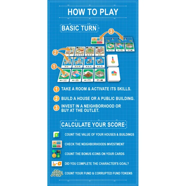 Le tour est simple et rapide, seulement 3 étapes sont nécessaires : prendre des pièces, compléter des plans et investir dans le quartier.
