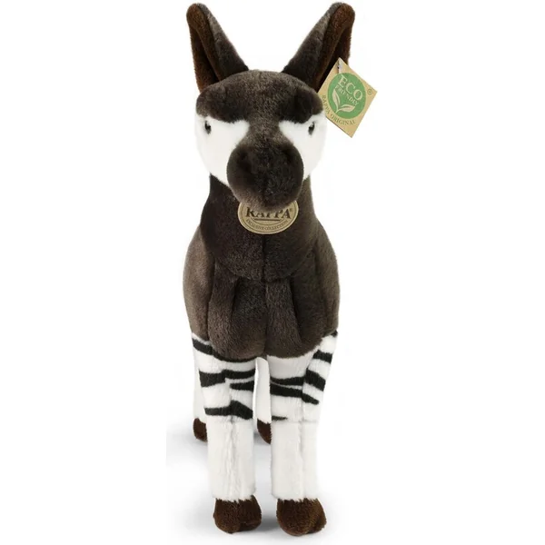 Le peluche okapi mesure 32 cm et grâce aux matériaux de la plus haute qualité, il fait partie de la collection exclusive de peluches de la marque Rappa. Grâce à la fabrication manuelle de chaque pièce, il ressemble en plus à un animal vivant.