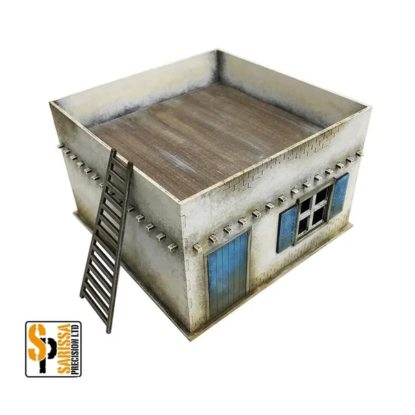 - 1 bâtiment en adobe en MDF, avec détails gravés, détails intérieurs et toit amovible.