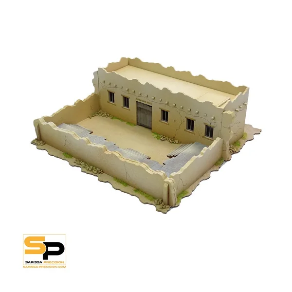 Le kit « Alamo East Jail & Cattle Compound » est constitué d’une tuile de terrain (200x200mm) sur laquelle se trouve un bâtiment pour Alamo, avec une prison et un enclos pour le bétail.