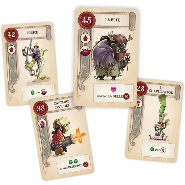 Jouez à travers trois chapitres en compagnie de personnages de contes de fées, d’histoires et de légendes. Tout d’abord, sélectionnez votre main de cartes. Ensuite, jouez vos cartes contre vos adversaires et utilisez les capacités de vos personnages pour marquer des points. Enfin, rassemblez vos cartes de départ pour les faire interagir entre elles et remporter encore plus de points, et pourquoi pas la partie !
